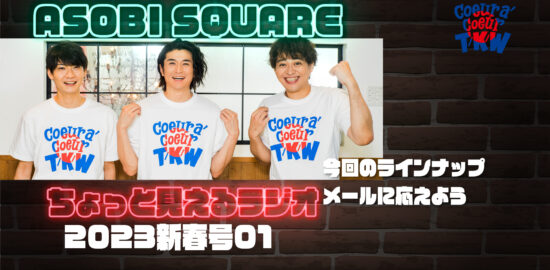 ちょっと見えるラジオ新春第2弾!今回もいただいたメールをもとにお話します!オープニングトークでは今年、今後やっていきたい役や仕事など!アイデアもありがとうございます! 髙﨑俊吾 加藤潤一 渡辺大輔